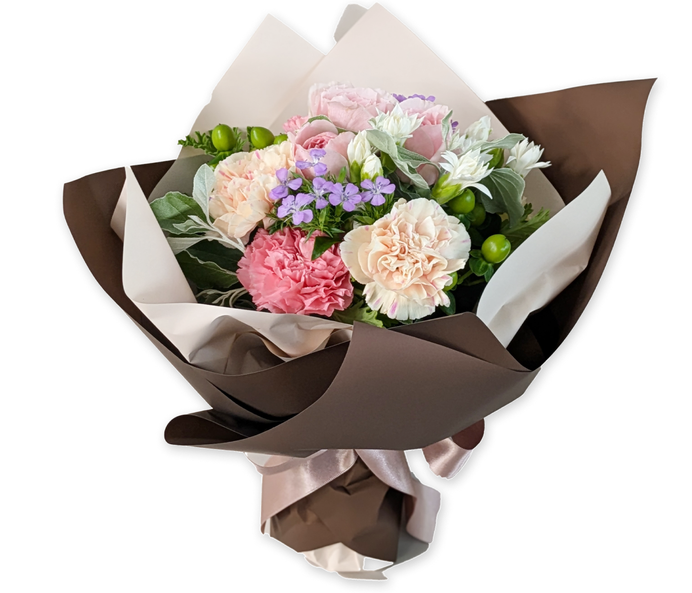 プロが厳選した季節の花々が華やかに彩ります。花の種類は届くまでのお楽しみ。